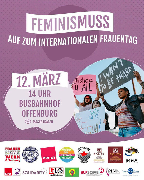 Rund um den diesjährigen Internationalen Frauentag hat das Offenburger Frauennetzwerk, dem auch wir Frauen der ASF angehören, ein umfangreiches Programm zusammengestellt.