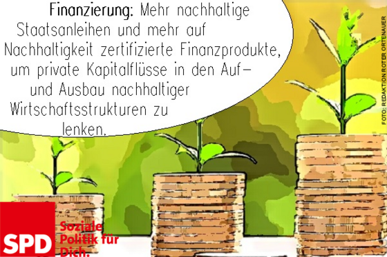 Mehr nachhaltige Staatsanleihen und mehr auf Nachhaltigkeit zertifizierte Finanzprodukte, um private Kapitalflüsse in den Auf- und Ausbau nachhaltiger Wirtschaftsstrukturen zu lenken.