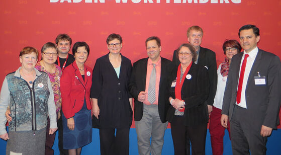Die Ortenauer Delegation mit der Spitzenkandiadatin der SPD Baden-Württemberg, Leni Breymaier und den Wahlkreiskandidaten der SPD Ortenau Dr. Johannes Fechner (Wahlkreis Lahr-Emmendingen, Platz 10), Elvira Drobinski-Weiß (Wahlkreis Offenburg, Platz 17) und Jens Löw (Wahlkreis Schwarzwald-Baar, Platz 26).