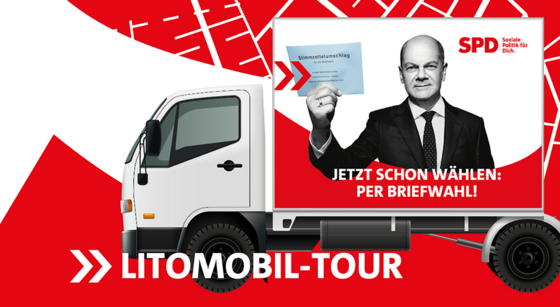 Vom 10. - 13. September touren wir mit unserem Litomobil durch die baden-württembergischen Wahlkreise und rühren die Werbetrommel für unsere Bundestagskandidiernden, Olaf Scholz und die SPD.