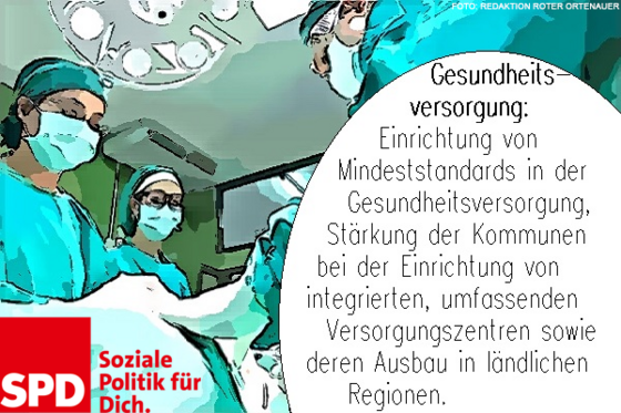Einrichtung von Mindeststandards in der Gesundheitsversorgung. Stärkung der Kommunen bei der Einrichtung von integrierten, umfassenden Versorgungszentren sowie deren Ausbau in ländlichen Regionen.